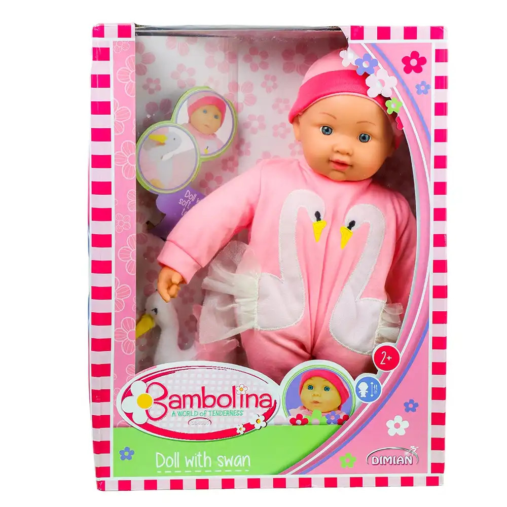 BAMBOLINA 41CM DOLL WITH NEW DRESS WITH PLUSH TOY- SWAN