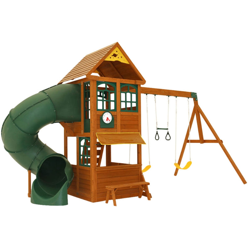 - Constructed with premium wood, heavy-duty brackets and hangers and child-friendly stain, the Forest Ridge Playset is thoughtfully designed to contain years of make-believe outdoor play